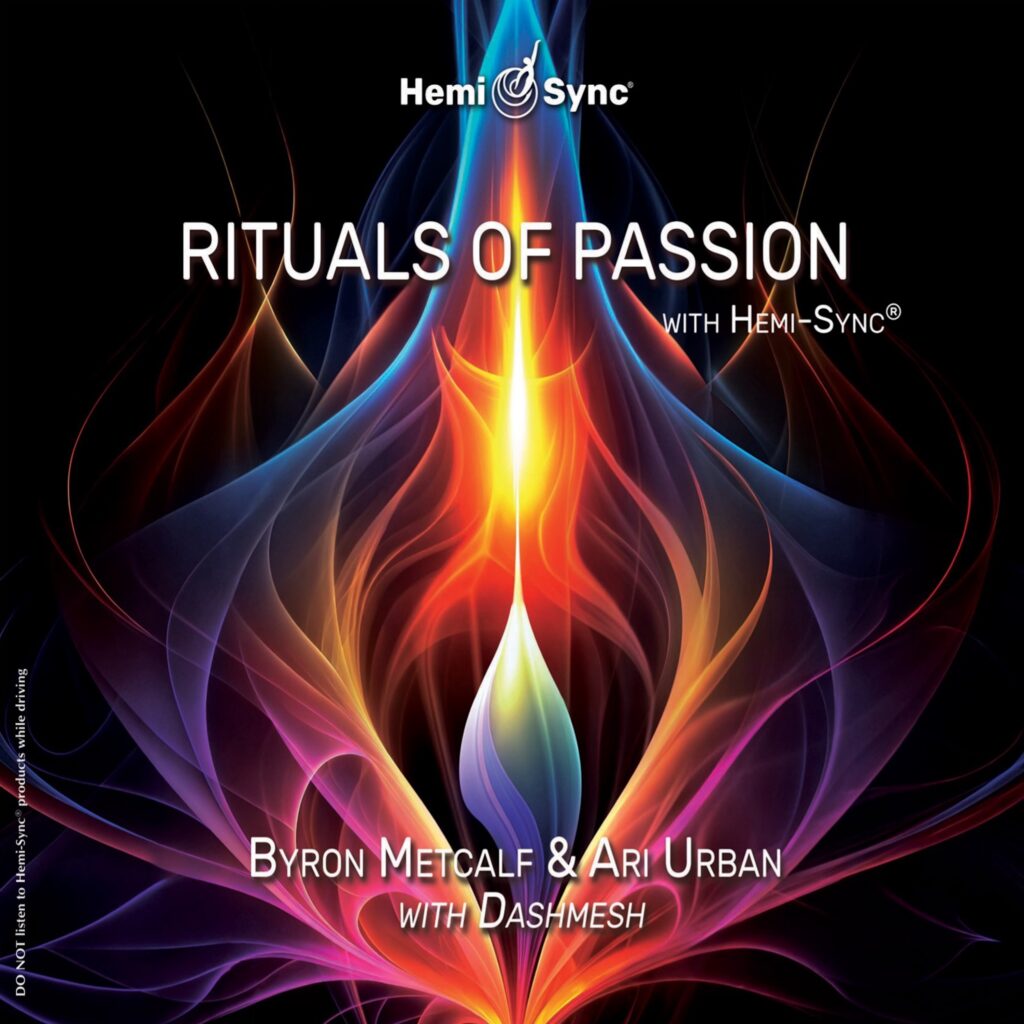 Iconic tribal-trance drummer, Byron Metcalf and award-winning virtuoso violinist Ari Urban, with guest performances by multi-instrumentalist Dashmesh, have created an evocative musical odyssey unlike anything you’ve ever heard. This deeply profound, mesmerizing sonic ceremony combines peace-filled vibrations from higher realms with passionate elements, along with the addition of Hemi-Sync® frequencies to transport you into the depths of your soul and beyond. You can pick up your own copy of Rituals of Passion with Hemi-Sync HERE